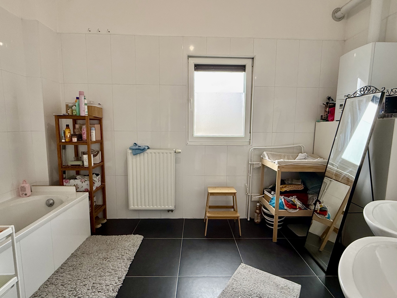 Infos techniques : compteurs individuels (eau, électricité et gaz), électricité CONFORME jusqu’en 2039, chauffage central au gaz, châssis PVC DV, raccordé aux égouts. – Très bon PEB C