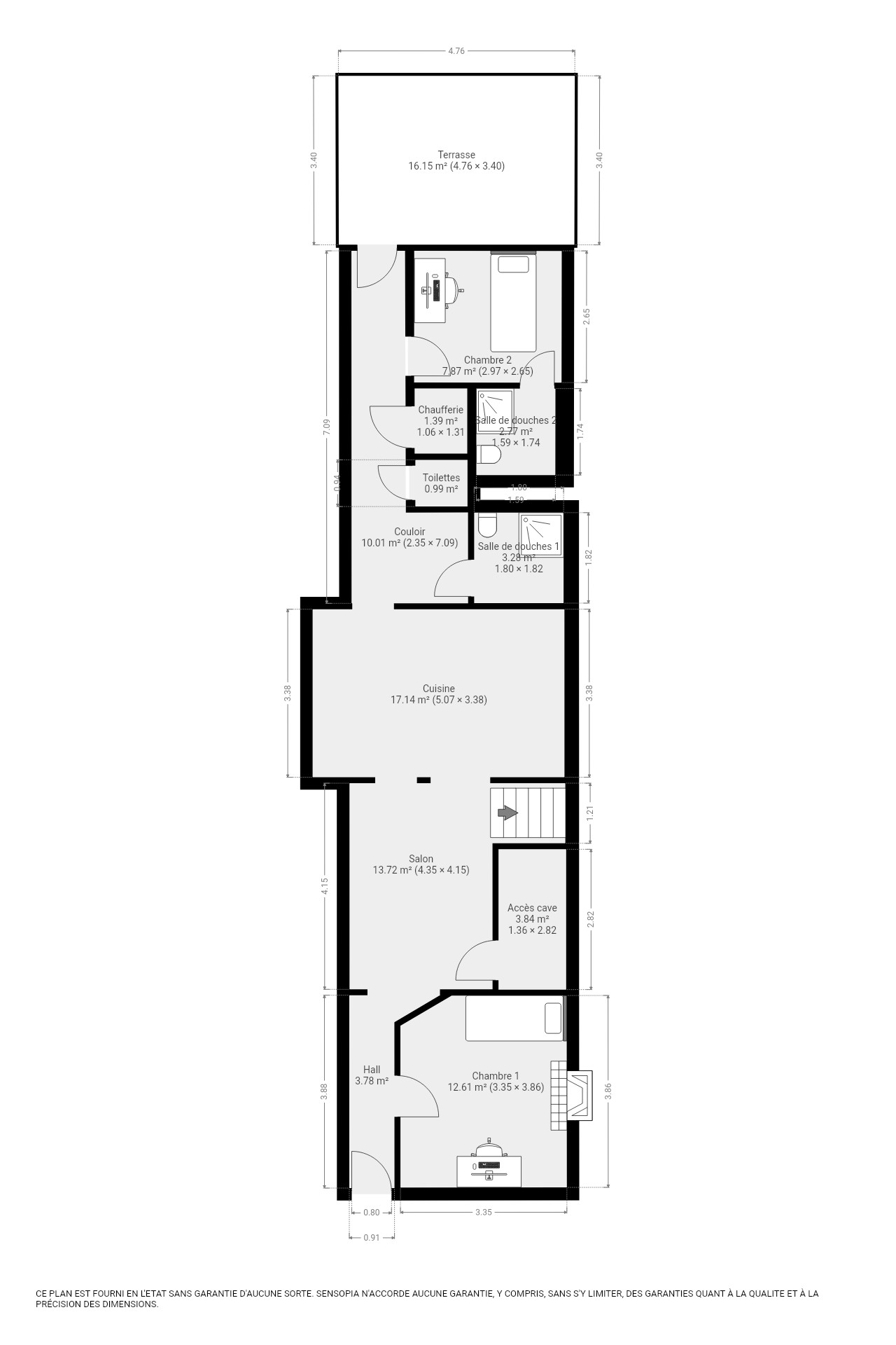 Provision de charges : 120,-€/mois – internet, électricité, eau, nettoyage des communs (2x/mois).