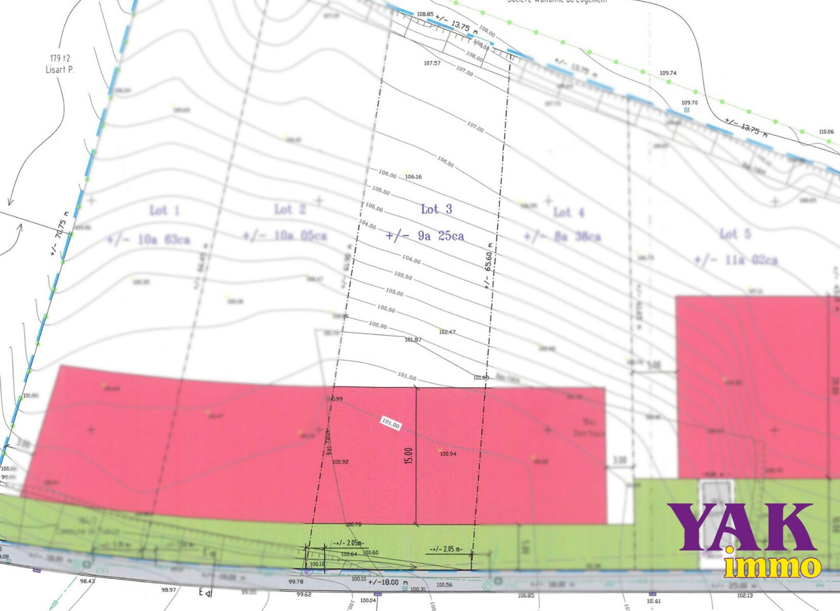 Un projet de construction sur un terrain de 9a 25ca, situé dans un lotissement à proximité de toutes les commodités (écoles, commerces, gare, transports en communs, axes routiers N6, A8, E429).
